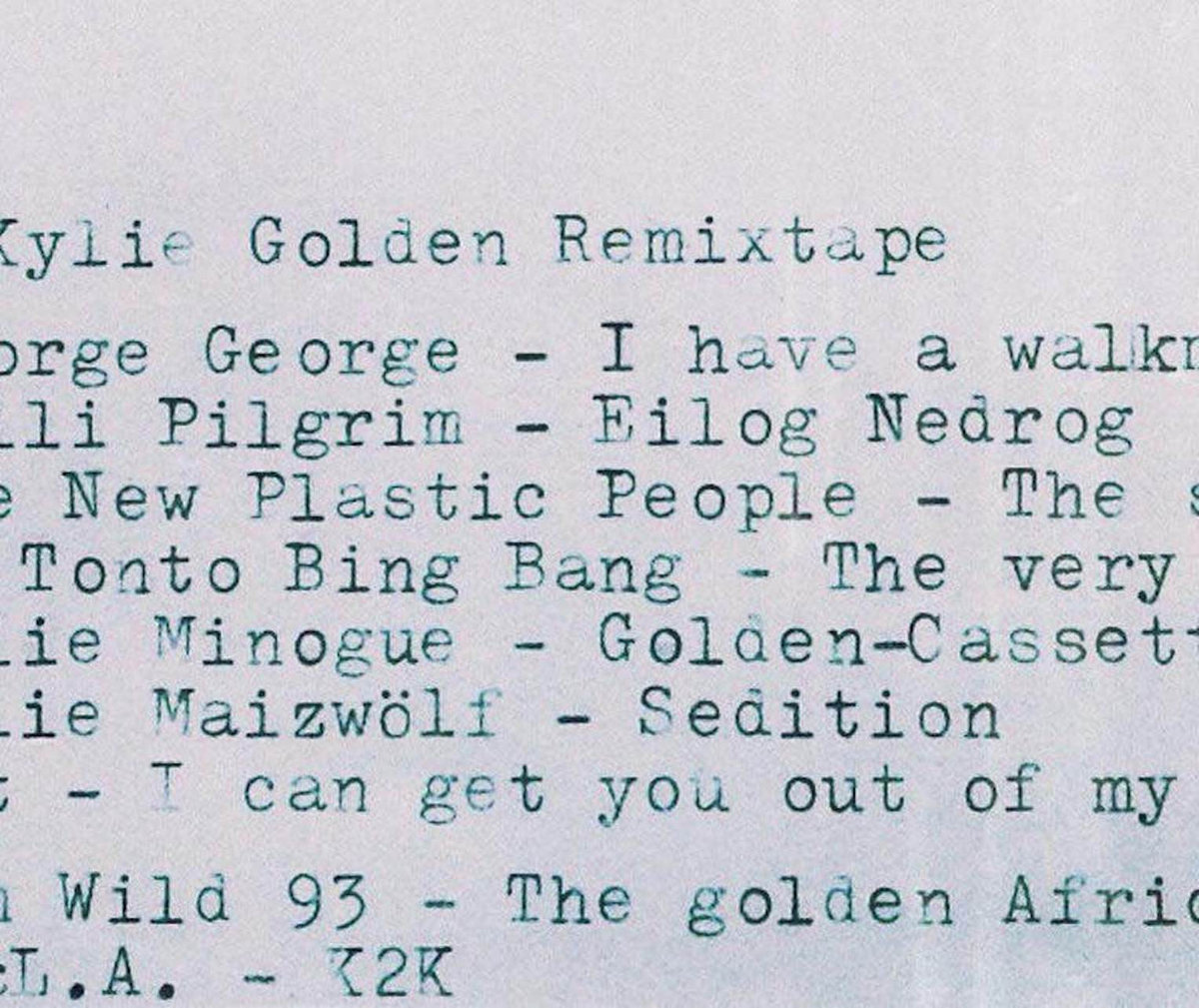 The Kylie Golden Remixtape was entirely produced at home, with postcards, Plovdiv the typewriter, a pack of sky-blue writing paper, spray paint, scissors, glue and silk paper, and of course a Yamaha 4track recorder and a Marantz CP430.